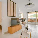 "Le Mediterranee" Plein Centre, Terrasse, Renove lägenhet erbjuder ett komplett kök samt rum med balkong, plattskärms-TV med satellitkanaler och luftkonditionering. Cimetière du Vieux Château ligger inom 1 km från lägenheten, medan Le Cabanon ligger 3 km bort.